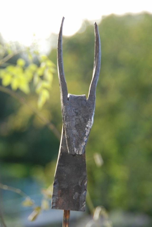 Der Stierkopf ist ca. 10cm groß, die Stange ca. 160 cm.