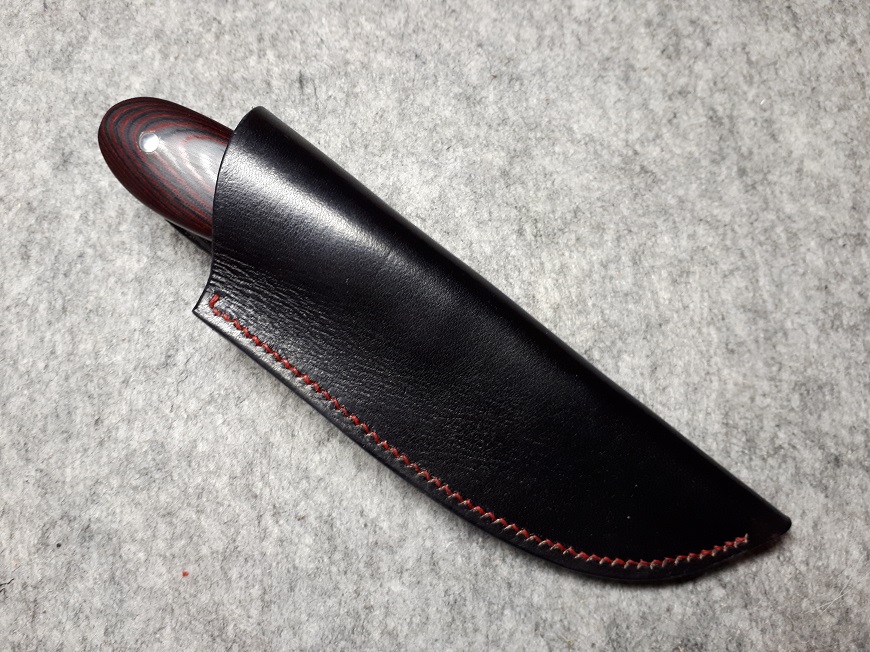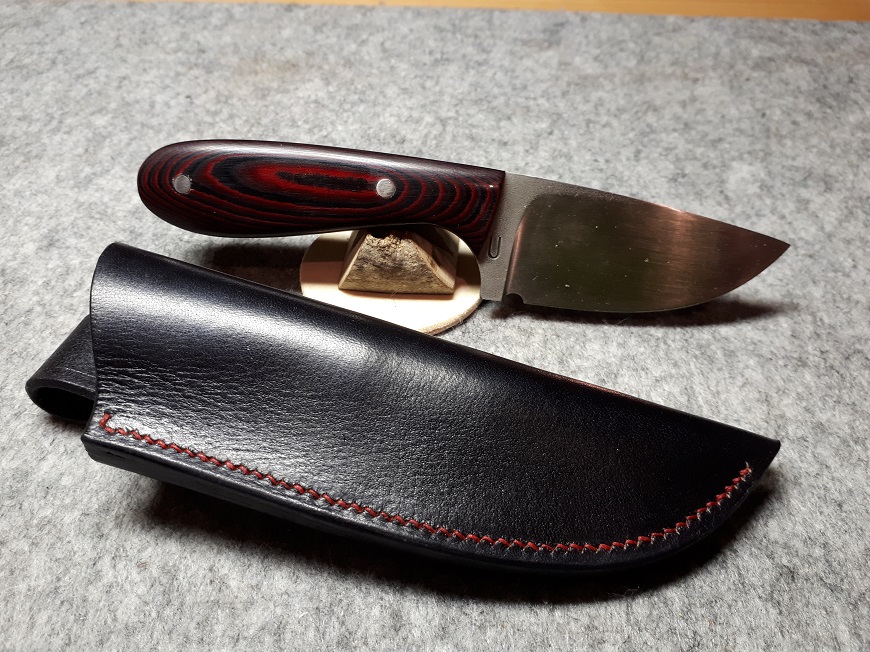 Das Messer wird mit einer handgenähten Scheide geliefert.