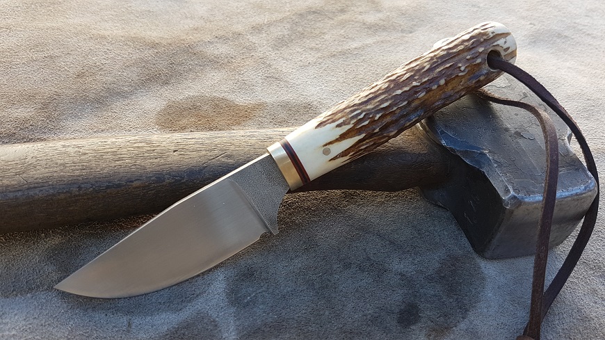 Das Messer wird mit einer handgenähten Lederscheide geliefert.