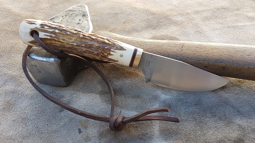 Die 80mm lange Klinge ist 3mm dick, aus SB1 gefertigt und von Stefan Steigerwald auf 61HRC gehärtet.