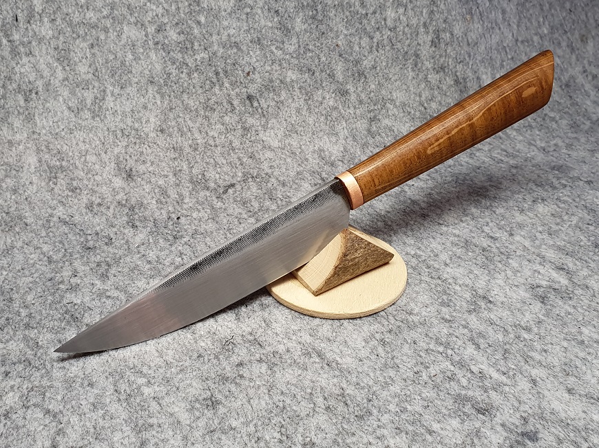 Die Klinge dieses Steakrmessers wurde aus einer Feile angefertigt.. Sie ist 125mm lang, 4mm dick und 25mm hoch. Das Messer hat eine Gesamtlänge von 245mm.