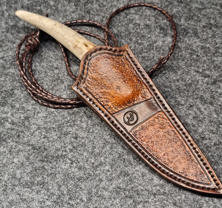 Neckknife mit handgenähter Messerscheide zum Umhängen.